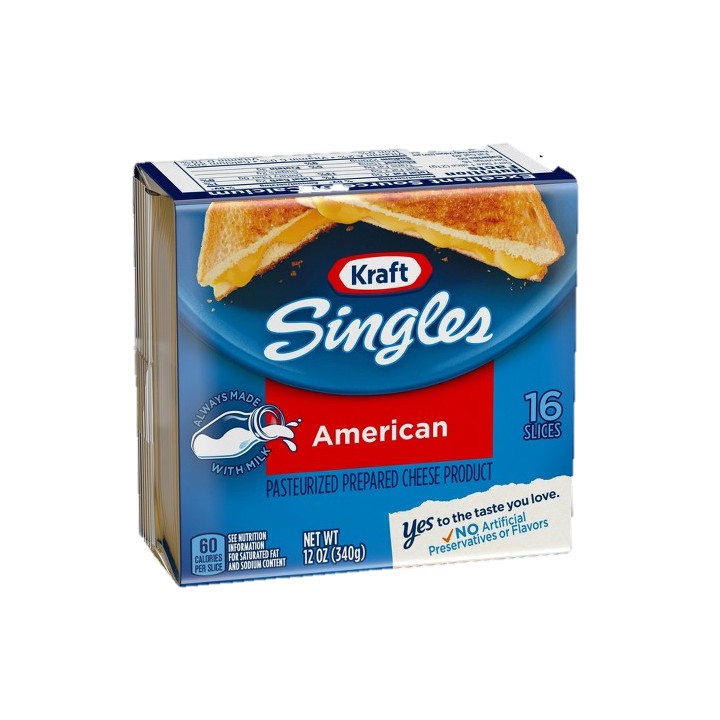 KRAFT Singles Cheese Slices | Products | My Food and Family kraft singles american cheese slices, 16 ct pack. For over 100 years, Kraft Singles has made the family-favorite American cheese. Only premium quality, real milk is used to prepare these delicious cheese slices. Enjoy the creamy melt of Kraft Singles on your next burger, sandwich, or grilled cheese.