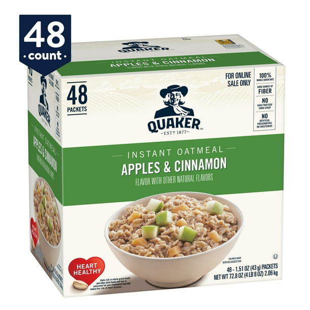 Is Quaker Oats Instant Oatmeal Good for You? | livestrong Nov 09, 2018 · The number of calories in Quaker oats is 100, with 20 calories from fat. The fat in Quaker oats includes .5 grams of saturated fat, .5 grams of polyunsaturated fat, .5 grams of monounsaturated fat and 0 grams of trans fatty acids, according to USDA Branded Food Products Database. A single serving only contributes to 3 percent of the daily value ... Amazon.com: Quaker Instant Oatmeal Lower Sugar, 4 Flavor ... Includes 44 packets of Quaker Lower Sugar Instant Oatmeal: Original, Maple & Brown Sugar, Apples & Cinnamon, and Cinnamon & Spice flavors ; All of your favorite Quaker flavors with 35% less sugar, no artificial preservatives or sweeteners, Good luck picking just one ; Made with 100% Whole Grain Oats