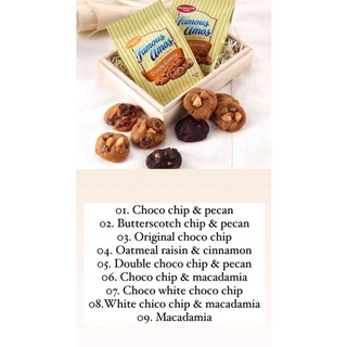 FAMOUS AMOS, Chocolate Chip Cookies - Nutrition Facts and ... - Medindia Navigate through different individual categories like Nutrition Facts, Calories, Vitamins, Minerals, Fats & Fatty Acids, Carbohydrates, Proteins, Amino-acids, Sterols and others . Nutrition Facts...