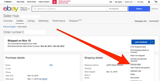 How to Get a Refund for USPS Shipping Label From Ebay [98% ... - DoNotPay Go to My eBay and sign in Click on Sell in the top right corner Find Orders in the Seller hub Select Shipping Labels Locate the item that you need to send Hit the Actions column and pick More Actions Select Void State the reason for voiding and, if necessary, type a message for the buyer Confirm by clicking on Void shipping label