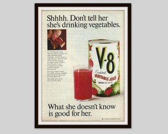 Original 100% Vegetable Juice - Campbells Food Service V8 100% Vegetable Juice is a delicious veggie snack for any time of day and can even help curb those late night cravings! Drinking V8 Vegetable Juice is a super convenient and lower calorie option than a sugary juice. Not to mention, adding vegetables to your day is an important part of any diet. V8=Vegetables=Good.
