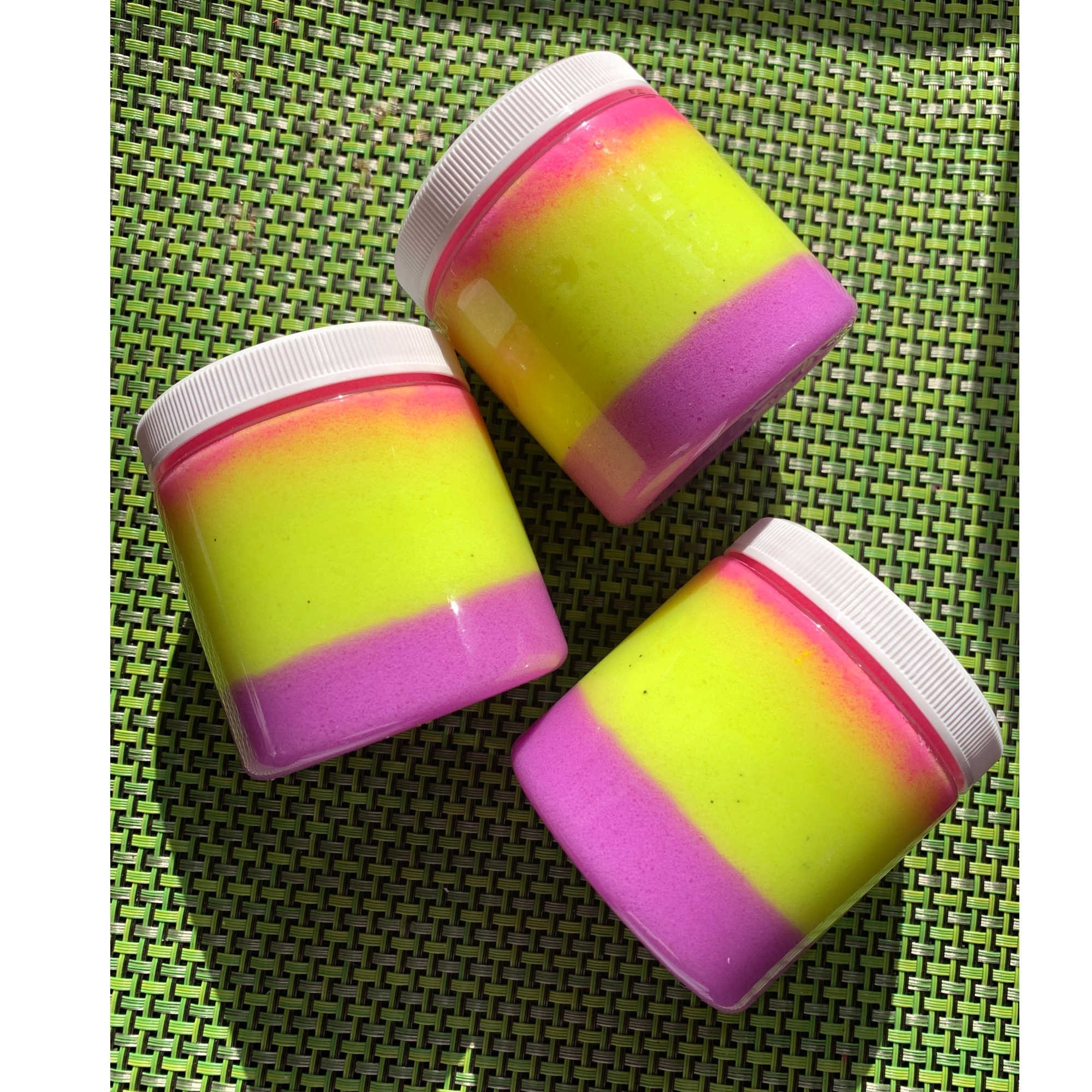 Sherbet Bodyscrub Skin Care Exfoliating Whitening Organic Peach Fruit Salt Shea Sugar Body Scrub OEM Private Label Natural