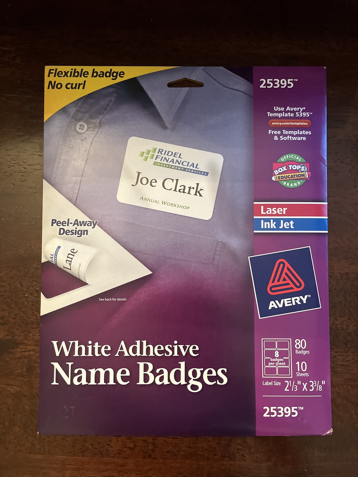 Template compatible with Avery® 5395 - Google Docs, PDF, Word Download PDF template compatible with Avery® 5395 Label description Avery US Letter - 5395 Adhesive Name Badges: It has 8 labels per sheet and print in US Letter.