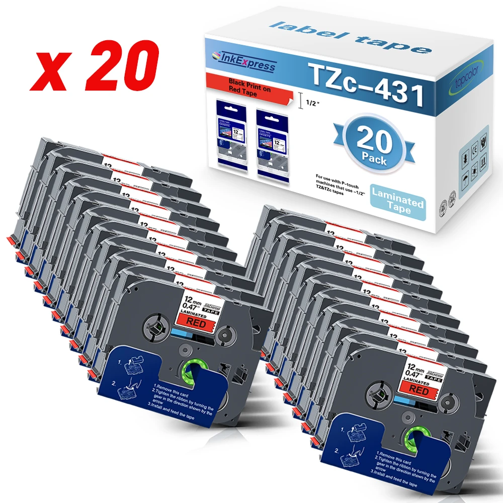 20PK Kompatibel Brother Label Pita 12Mm Hitam Pada Merah Label Stiker Tz431 untuk Brother PTouch PTH110 PTH200 E550W Mesin Pelabelan
